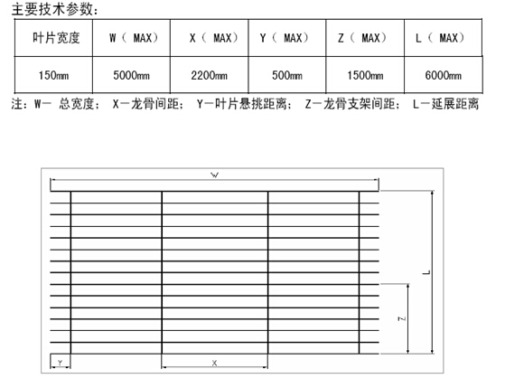 葉片截面寬度150mm,壁厚達1.5mm。采用鋁合金材料制成,具有強度高,質量輕,耐腐蝕等優點。表面噴涂處理,顏色可按國際標準色號任意選擇,涂層牢固穩定、抗紫外線能力強,具有很好的遮陽節能效果。